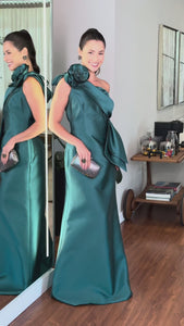 Vestido longo em zibeline um ombro com flor aplicada | Lívia Ribeiro